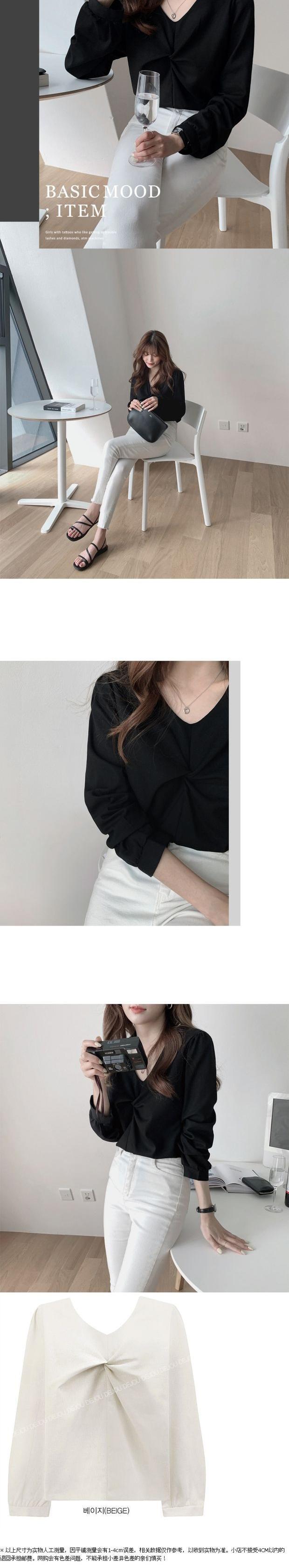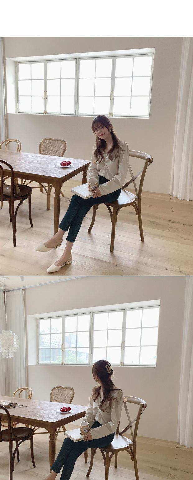 オータムスタンダードブラウス シャツ 長袖スリーブVネック ロング レトロ 大人ガーリー スウィート キュート カジュアル 秋物 左左右右3303760