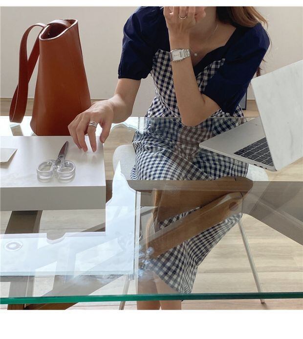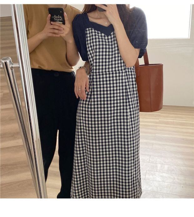 サマースカート 格子柄ドレス 夏物 フラワーデザイン ステッチ 左左右右7616783