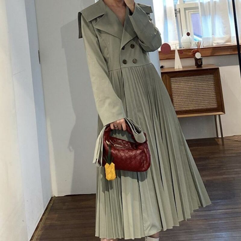 スタンダードプリーツダブルブレストロングコート レトロ レース エレガント レースアップ ICC_レディース2988064