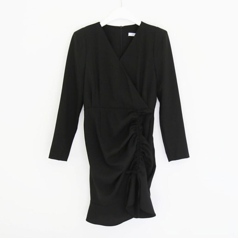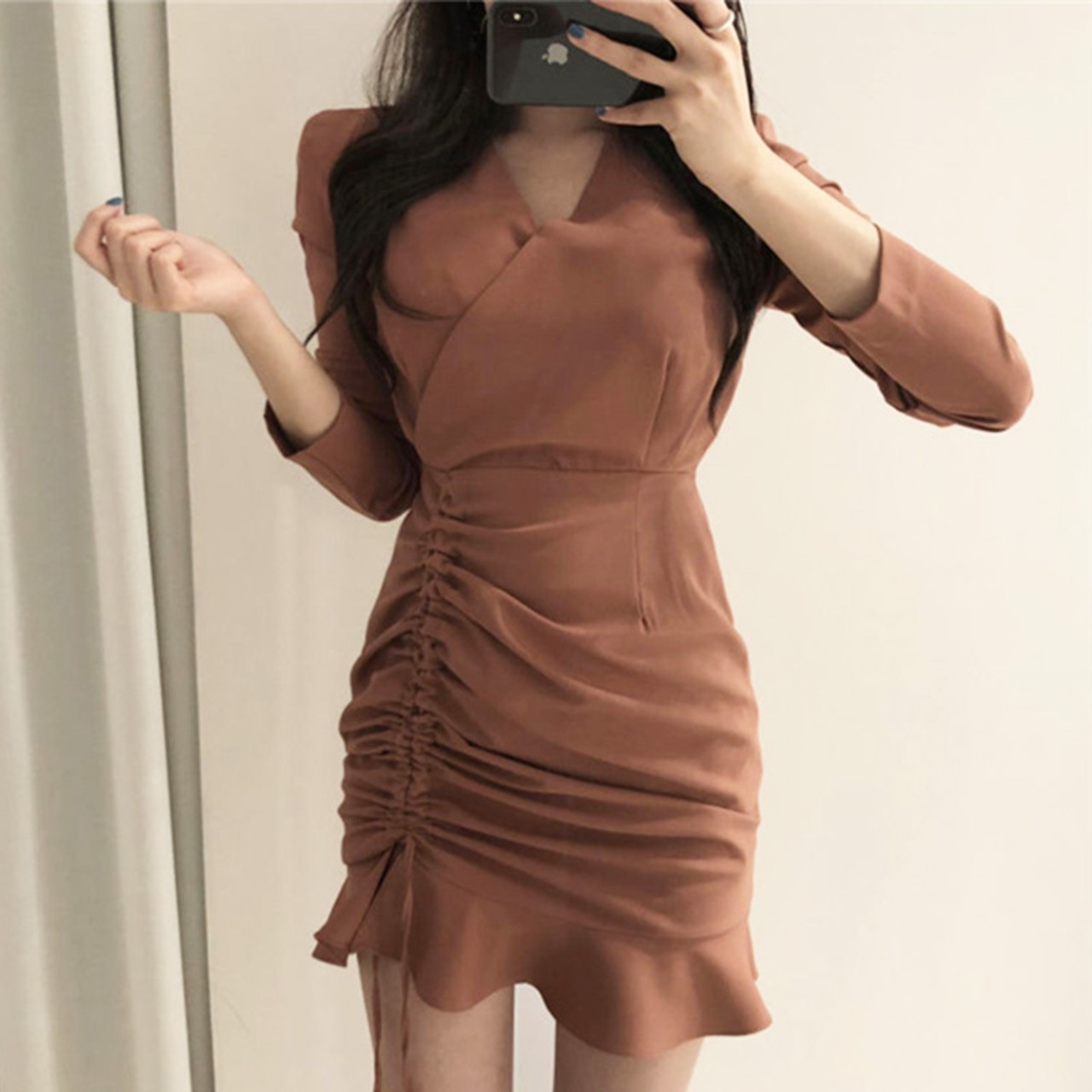 Flowerデザイン スカート ギャザースリムドレス ロング レース Vネック フラワーデザイン ICC_レディース9471957