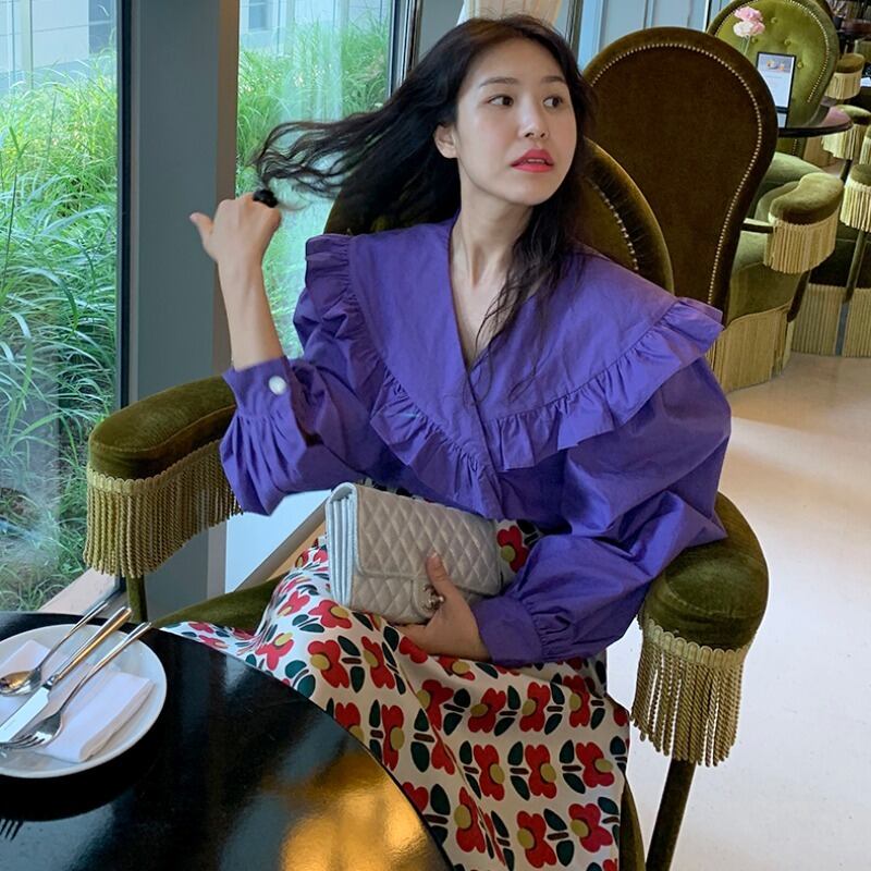 ダブルブレスト長袖スリーブシャツ ハイウェストウェストスカート ロング 大人ガーリー スウィート キュート カジュアル ICC_レディース5756844
