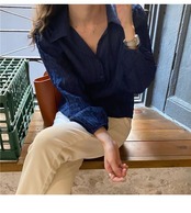 オータムトップス シャツ 長袖スリーブカラースタンダードレディース ロング レトロ 秋物 左左右右2679644