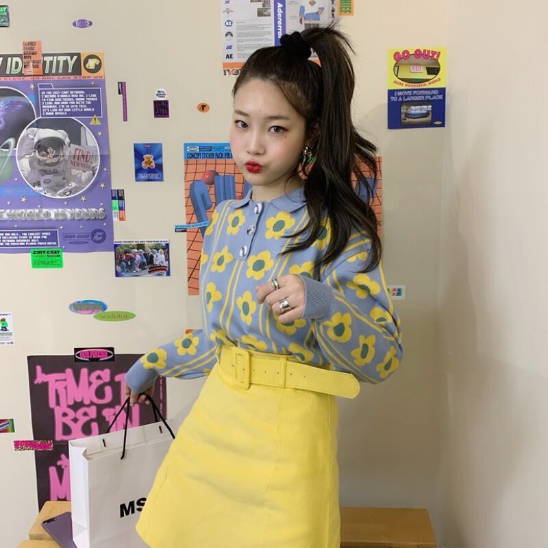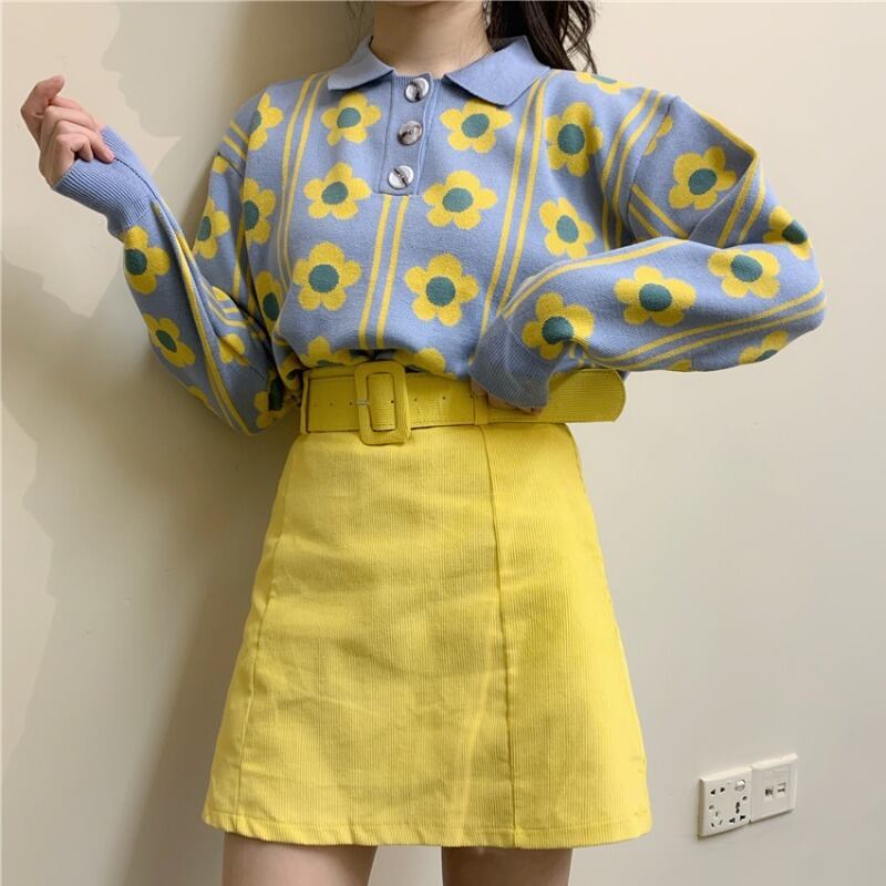 色:花のセーター,スカート小,スカートミディアムコード,スカートプラスサイズ