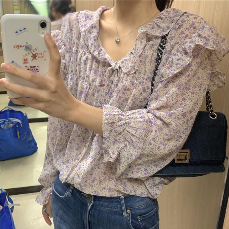 ルーズフローラルシフォンシャツ ロング 大人ガーリー スウィート キュート カジュアル 花柄 かわいい ICC_レディース4000215