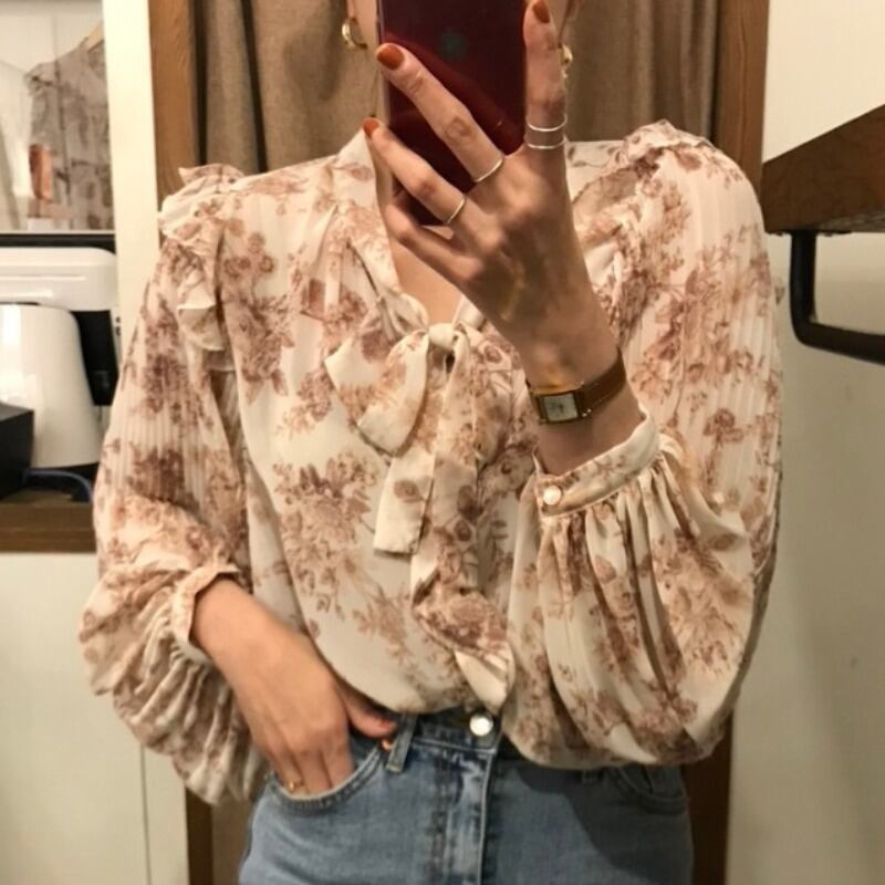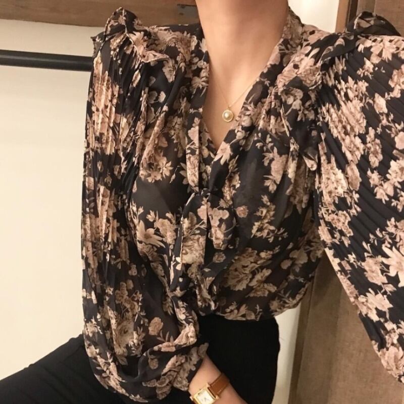 プリーツレーススリーブシャツ トップス ロング ランタンスリーブ 大人ガーリー スウィート キュート カジュアル ICC_レディース4908262