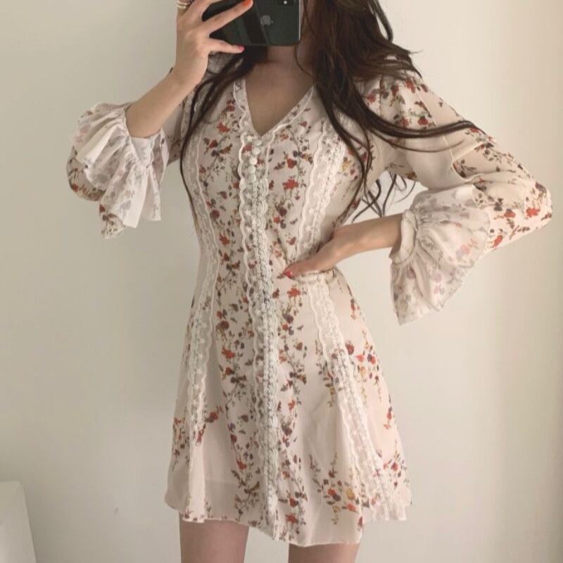 レースフローラルスリーブドレス レッド 花柄 ICC_レディース6642493