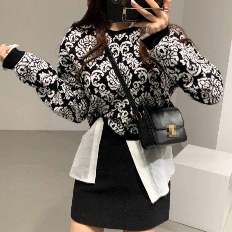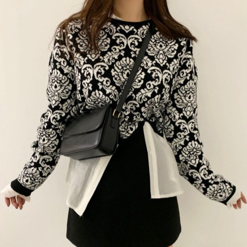 スタンダードジャカードニットセーター レトロ ICC_レディース5895744