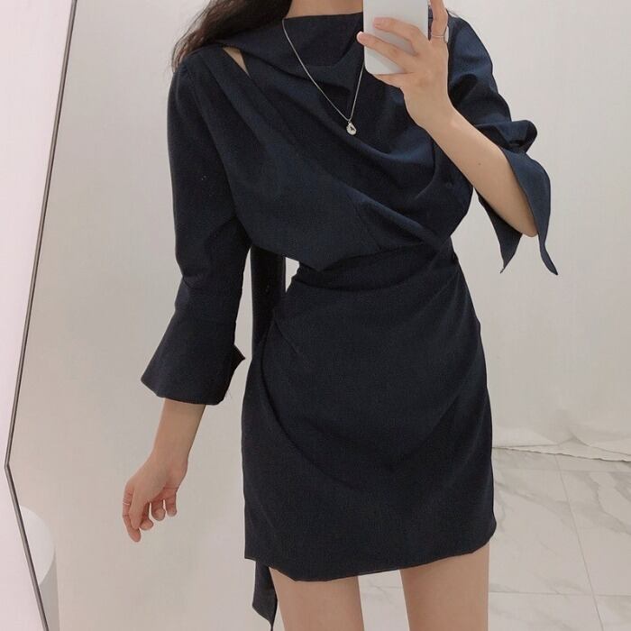 オータム薄手ハイウェストウェストショートスカート スリーブドレス 秋物 ICC_レディース5223407