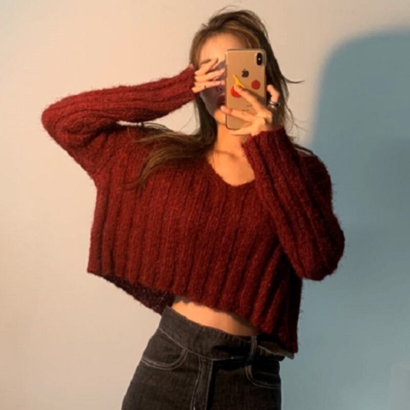オータムスタイルショートVネックルーズスタンダードストライプセーター レディース ロング レトロ 大人ガーリー スウィート キュート カジュアル 秋物 ICC_レディース9484283