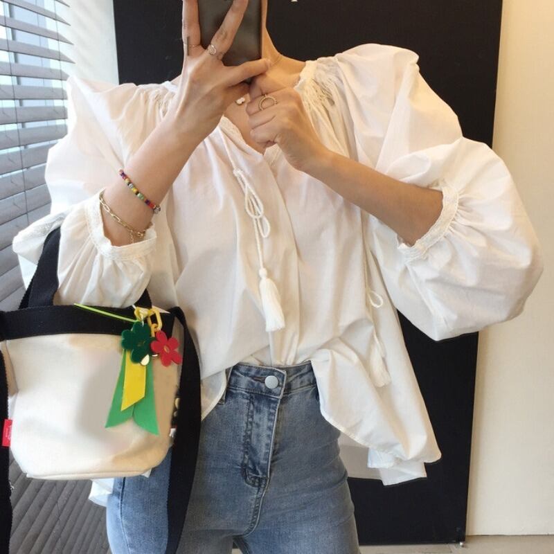 オータムスタイルスタンダードレースルーズスリーブシャツ ロング ランタンスリーブ レトロ 秋物 ICC_レディース7642749