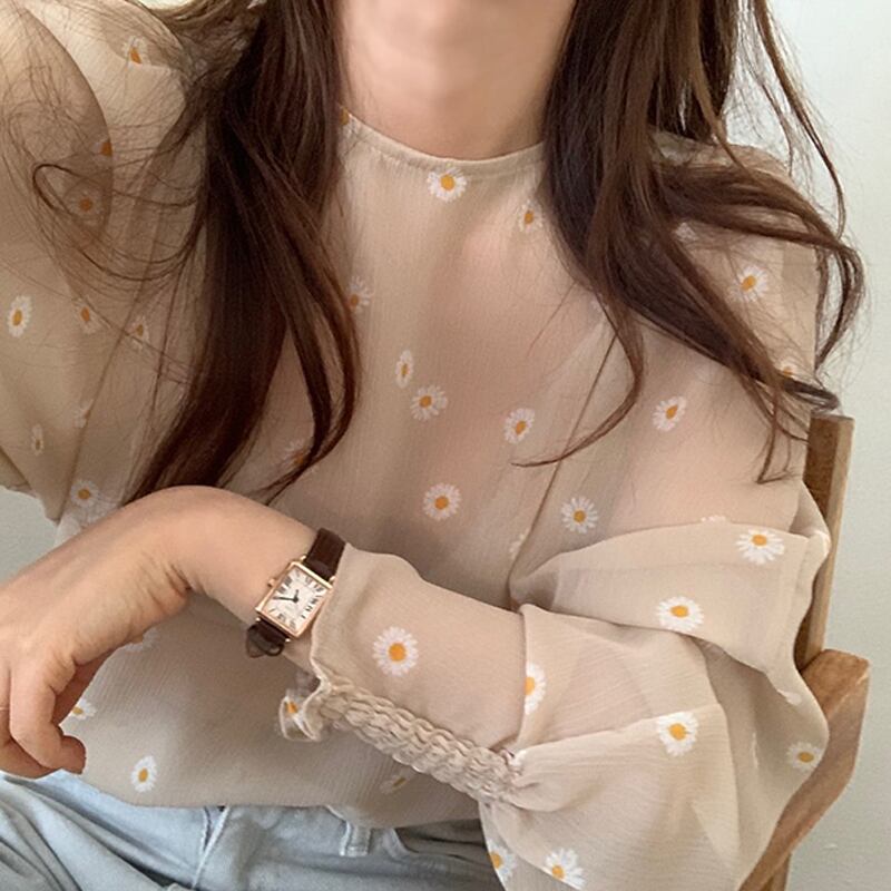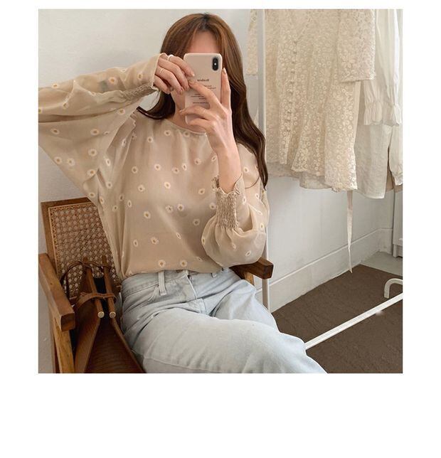 オータムブラウス プリントルーズシフォンシャツ ロング 大人ガーリー スウィート キュート カジュアル 秋物 左左右右9298653