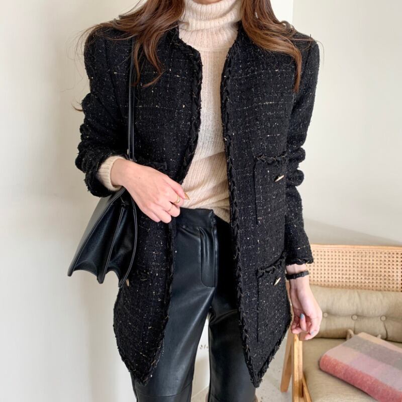 ラウンドネックコート カーディガンツィードトップス ロング Oネック ICC_レディース3191385