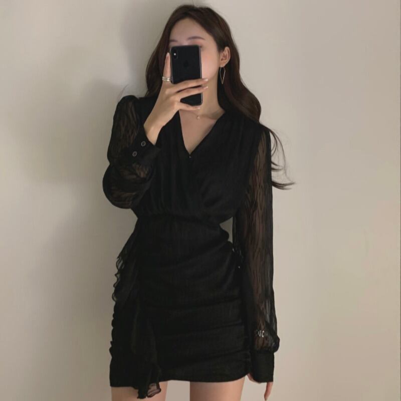 オータムVネックウェストドレス エレガント 秋物 ICC_レディース7364908