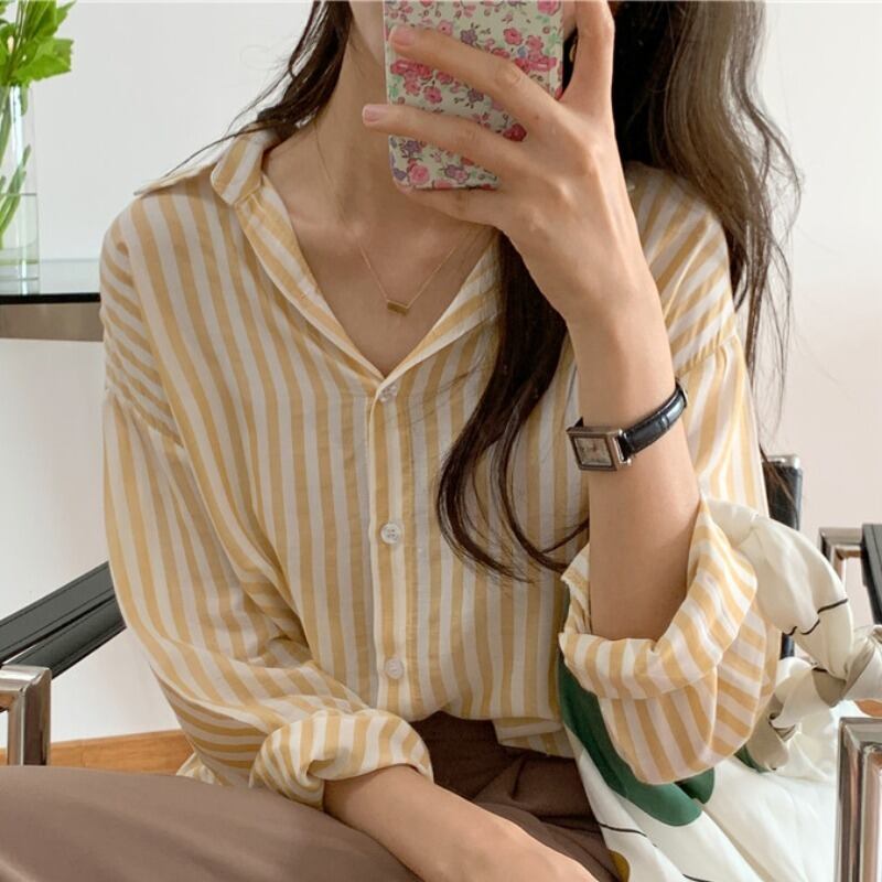 ストライプルーズ長袖スリーブシャツ ロング ICC_レディース7244821
