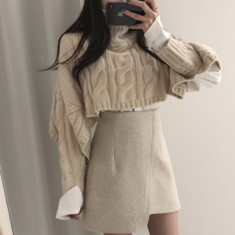 ショートプルオーバー セーター ハイウェストウェストスカート ICC_レディース0909822
