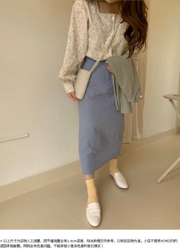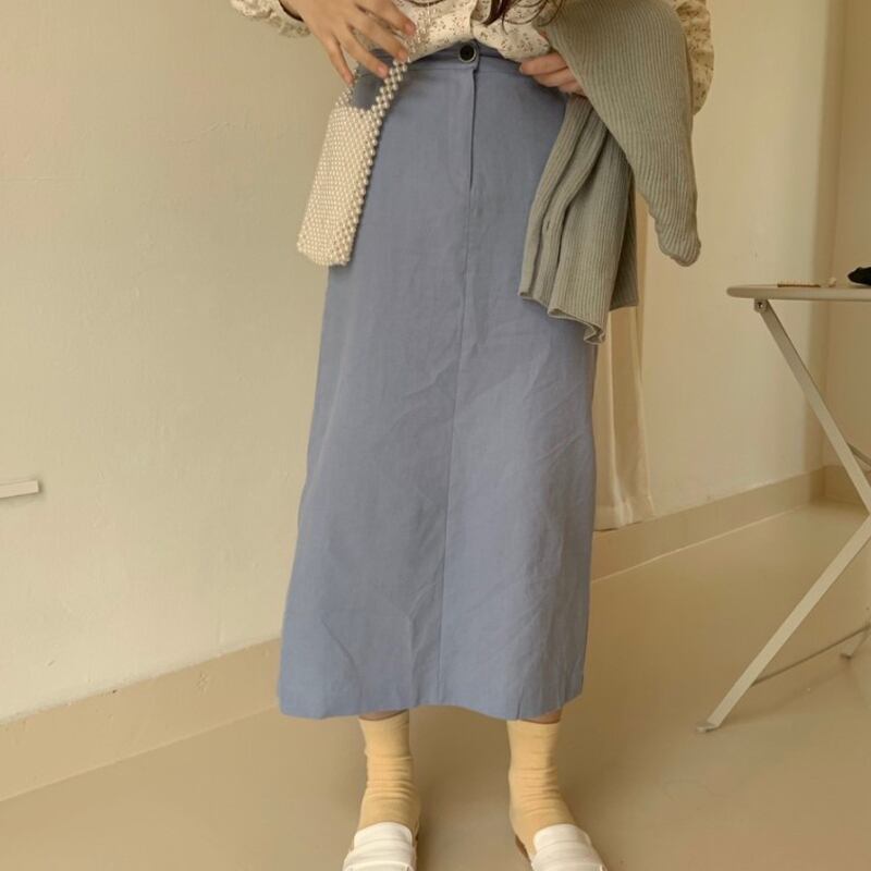 スプリングオータムブルーハイウェストウェストスタンダードスカート レトロ 春物 秋物 左左右右9963776