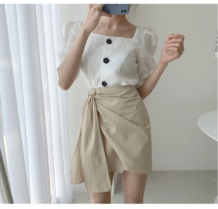 スタンダードスカート ハイウェストウェスト薄手 レトロ レース レースアップ 左左右右9517220