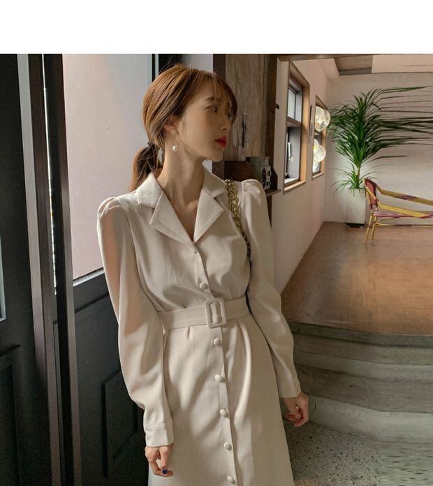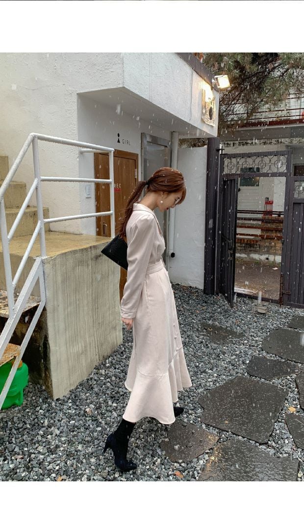 オータムウィンタースタンダードスカート ウェストカラードレス レトロ 秋物 冬物 左左右右10153499633