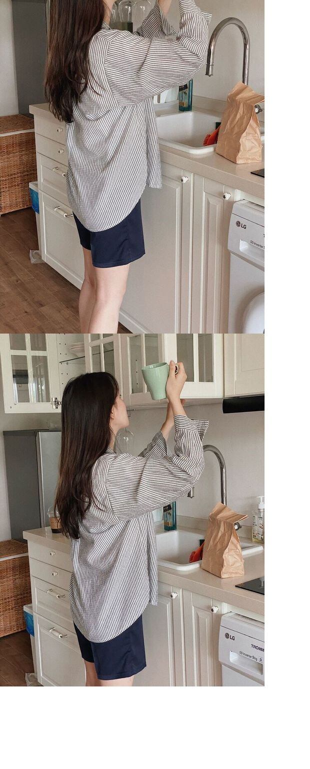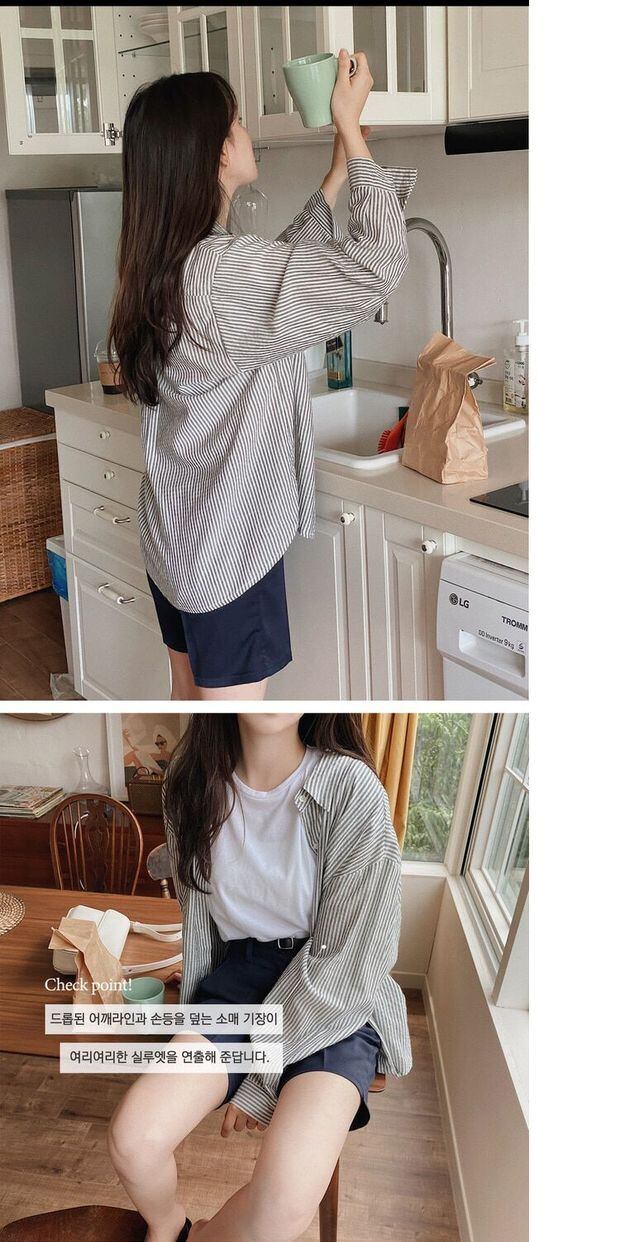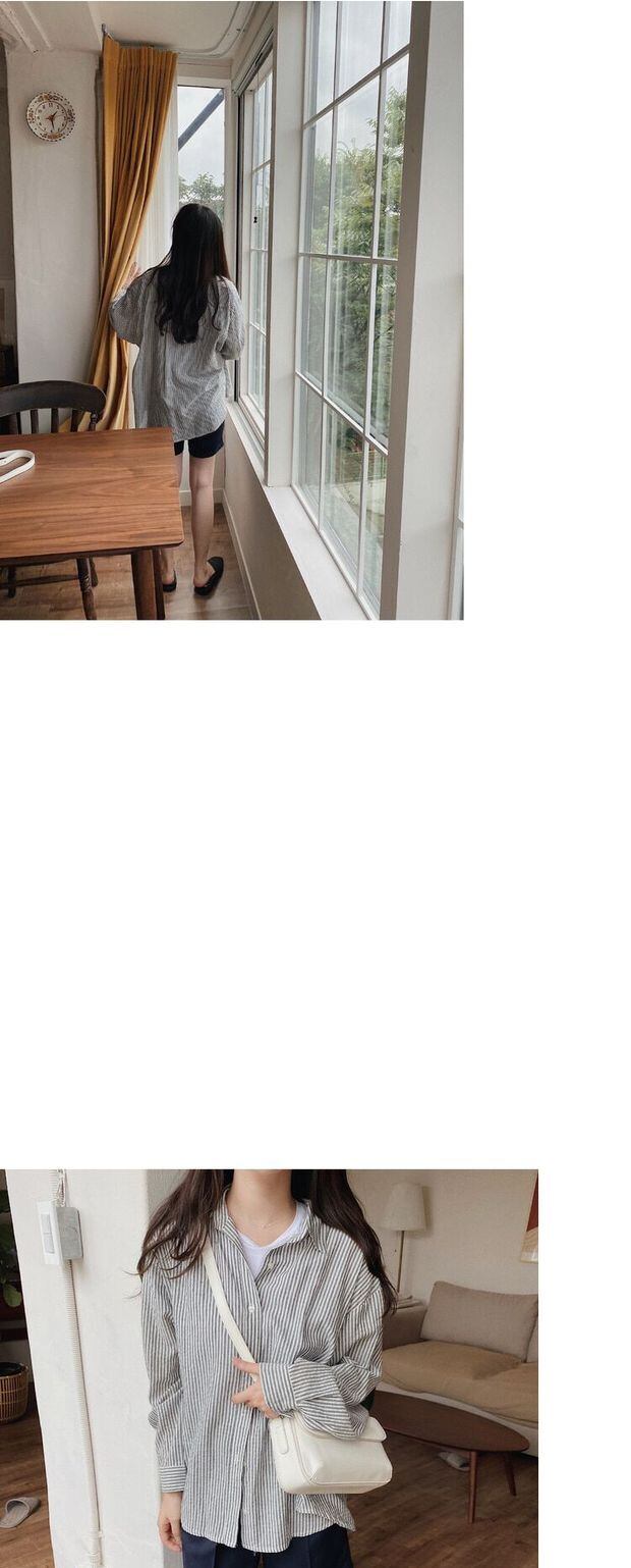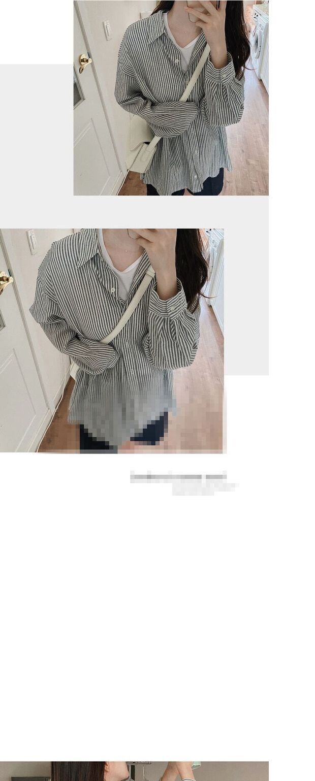 スプリングオータムカラーシャツ カーディガンルーズスタイルストライプ ロング 春物 秋物 左左右右81076318325
