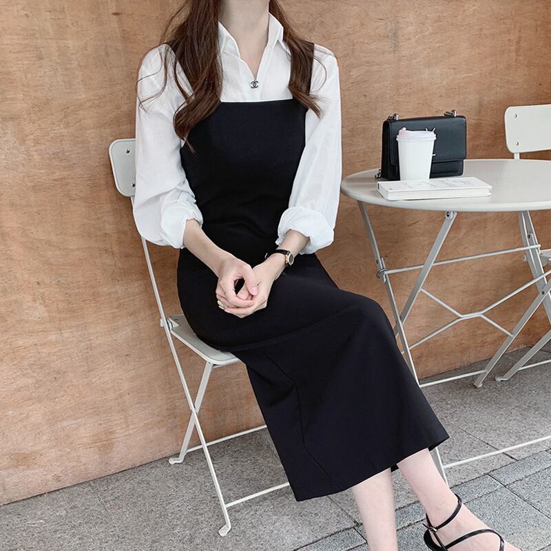 スプリングオータムスタンダードブラックスカート スタイルロングドレス レトロ 春物 秋物 左左右右1800901149