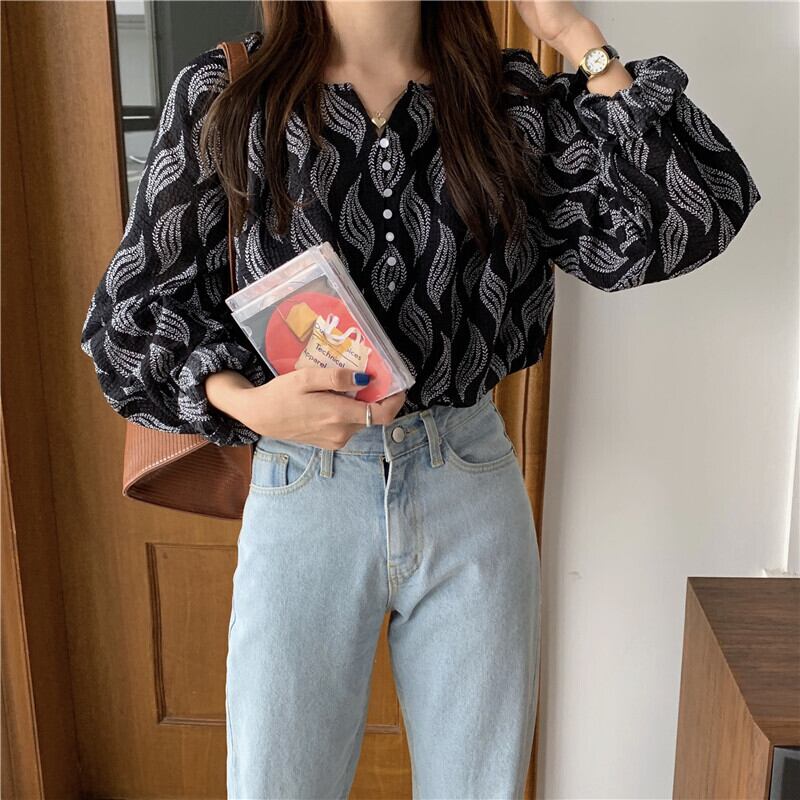 トップス オータムルーズ長袖スリーブプリントシャツ レディース ロング 秋物 左左右右12440680702