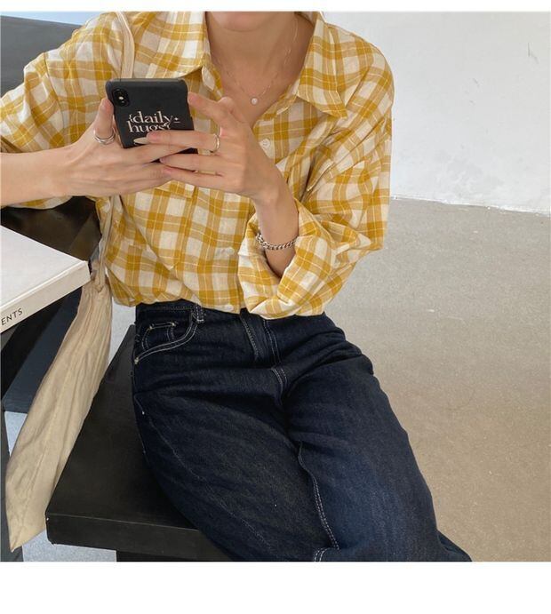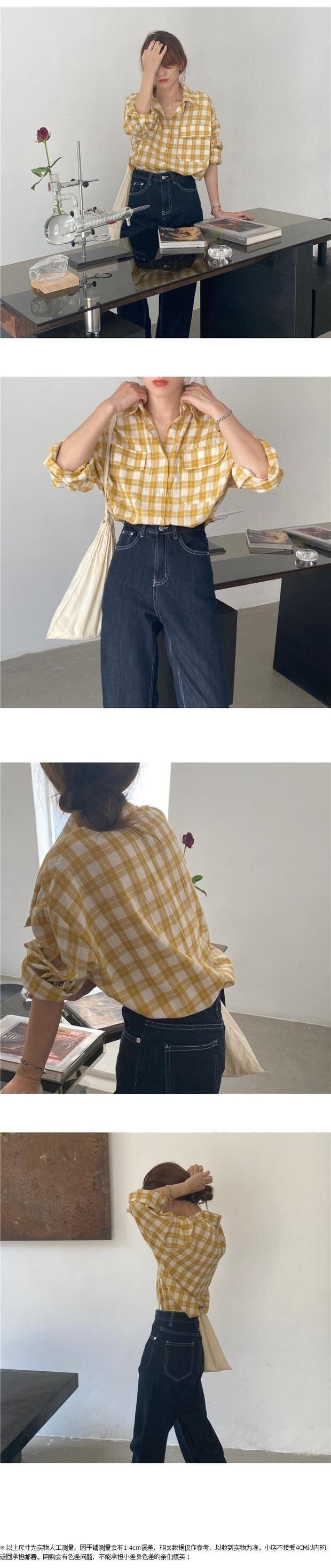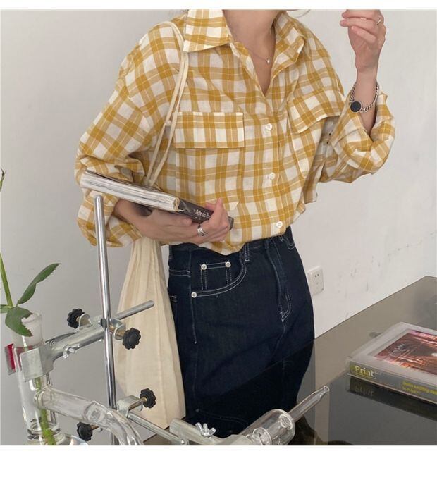 スプリングオータムルーズカーディガンシャツ スタイル格子柄 春物 秋物 左左右右23101396649