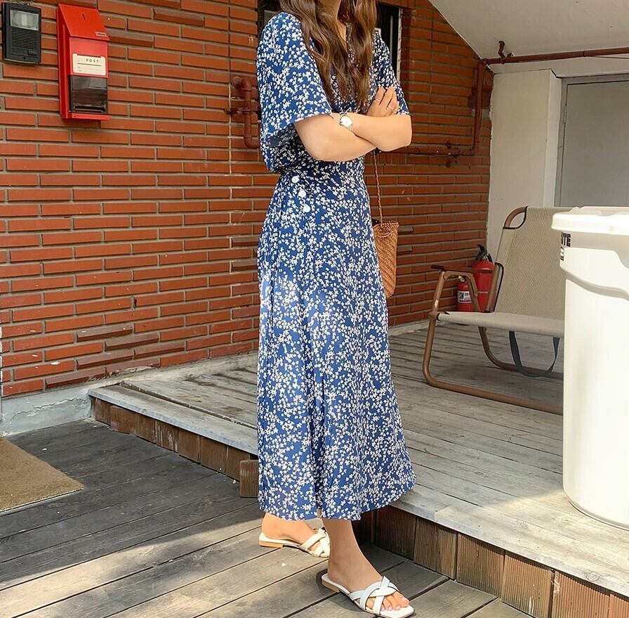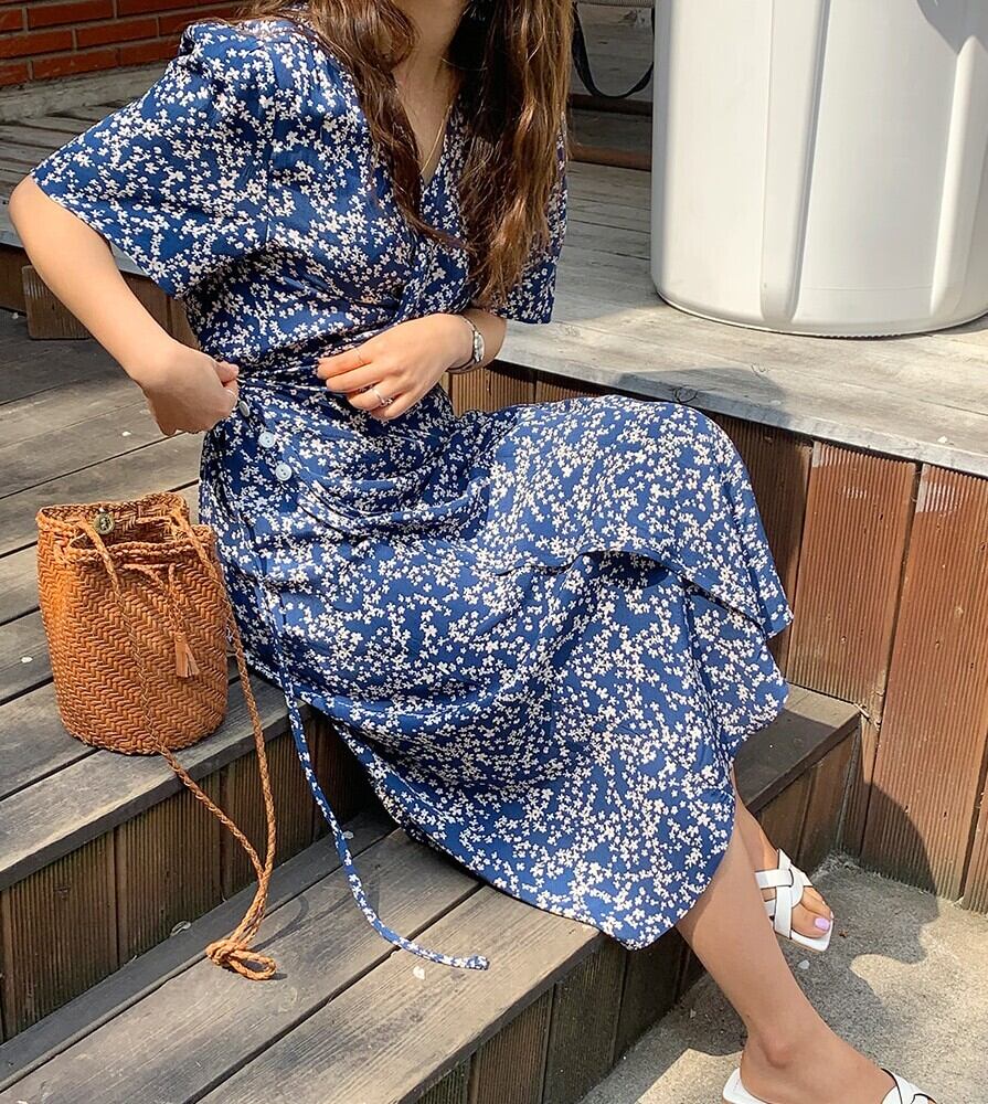 サマースタンダードスカート ドレス フローラル レトロ 夏物 花柄 左左右右1561222