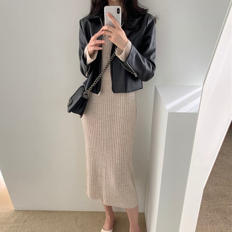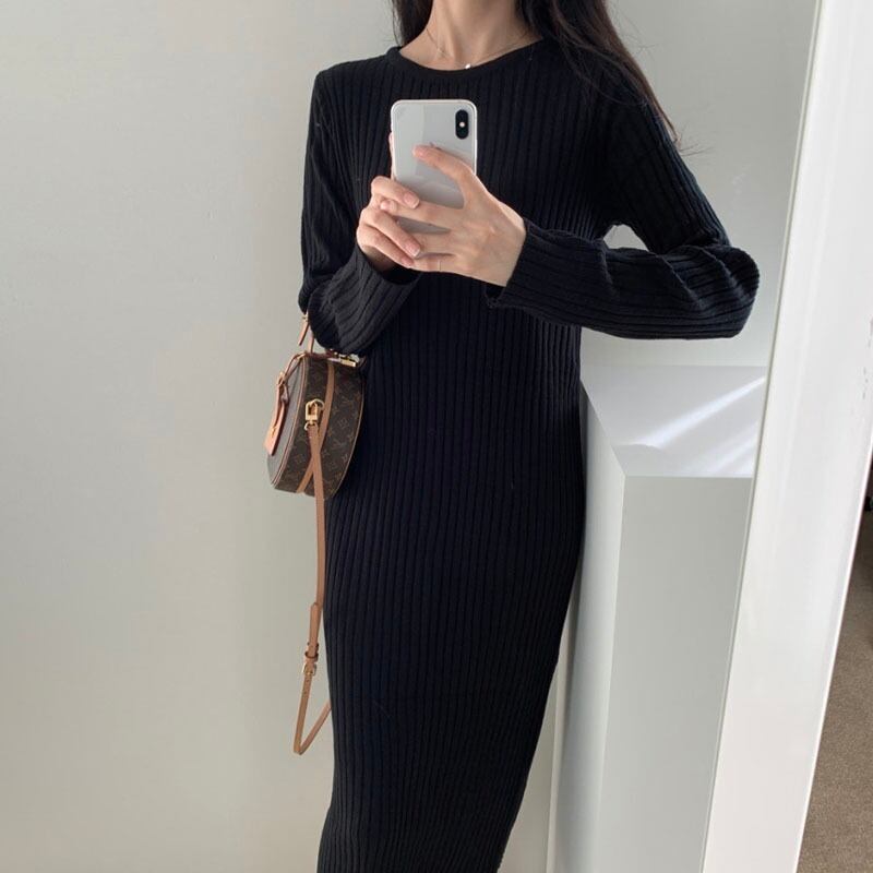オータムウィンターニットドレス レディースロングルーズスタイルセーター スカート 秋物 冬物 ICC_レディース94806357726