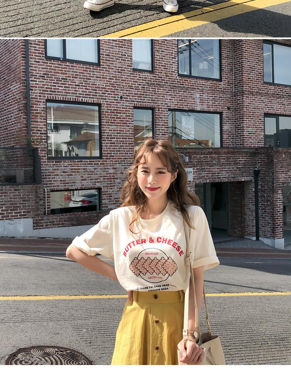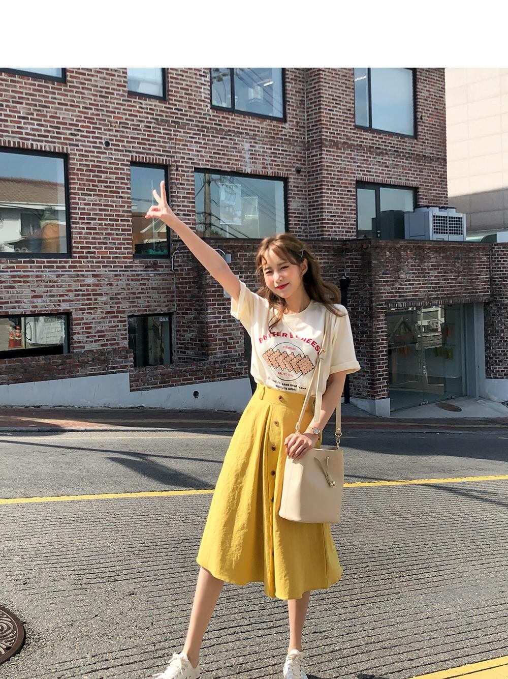 サマーハイウェストAラインスカート ホワイトプリントTシャツ 夏物 左左右右7593634