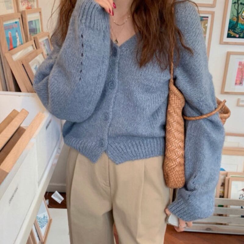 オータムウィンターホワイトブルーVネックニットカーディガンセーター ジャケット レディース ロング 秋物 冬物 ICC_レディース79444464968
