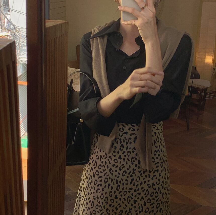 オータムカジュアルシャツ レオパードプリント柄ハイウェストウェストスカート ロング 秋物 ICC_レディース11704280115