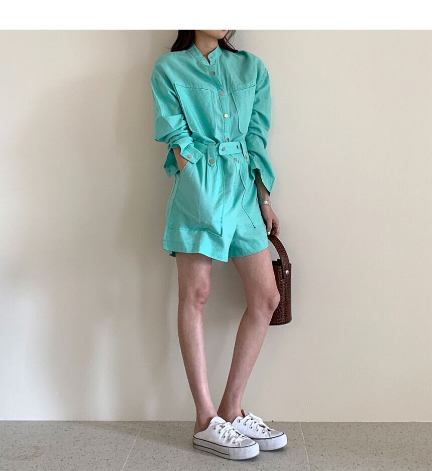 オータム薄手ハイウェストルーズオーバーオール ジャンプスーツ オールインワン ショーツ レディース 秋物 ハーネス ベルト ブルマー ICC_レディース96156295311