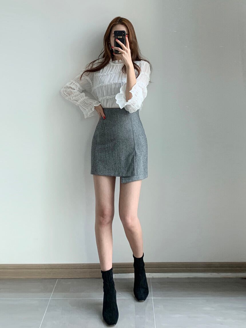 色:アプリコットトップ,ホワイトトップ,ブラックトップ,カーキ色のスカート,グレーブラックスカート