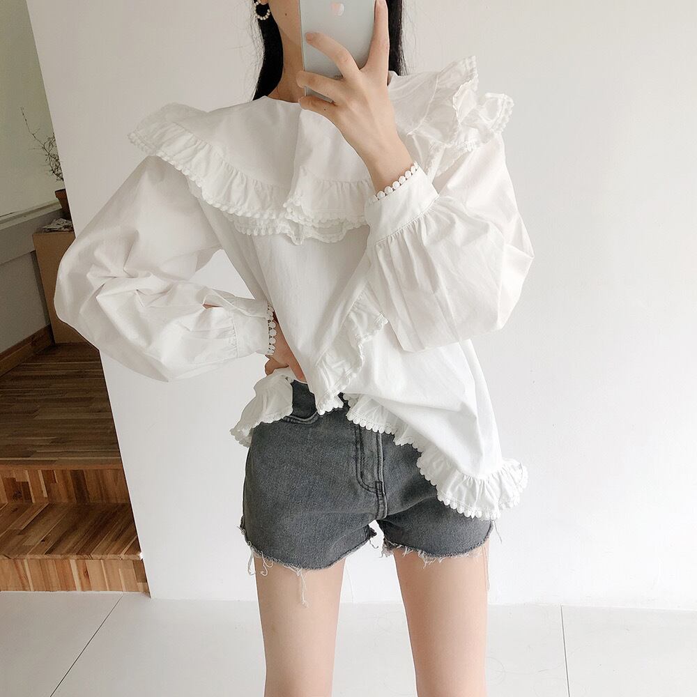 オータムレースシャツ レディース ロング 大人ガーリー スウィート キュート カジュアル 秋物 ステッチ ICC_レディース26406190719