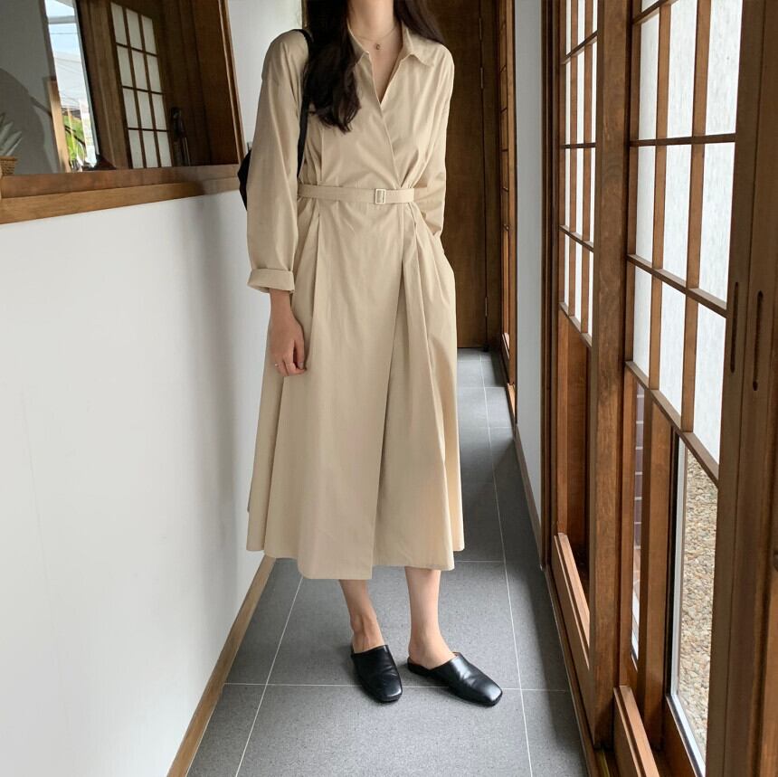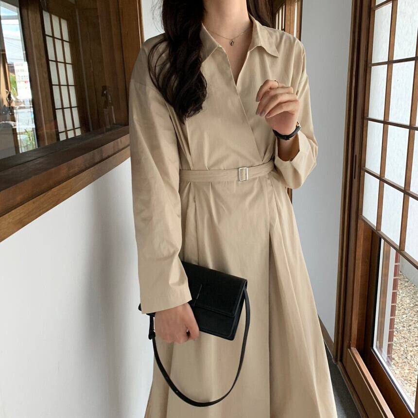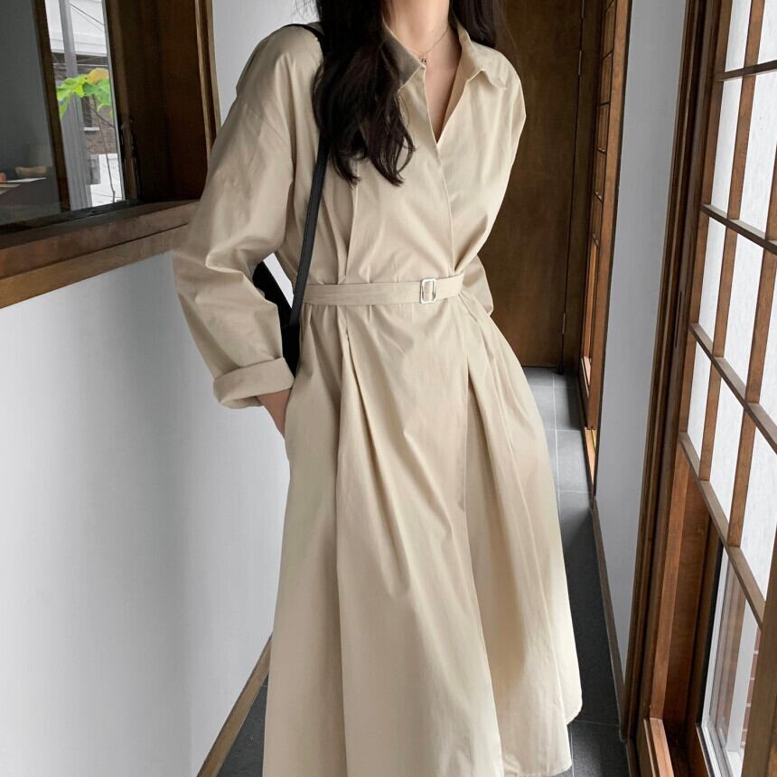 オータムルーズスリムスタイルシャツ 長袖スリーブドレス ロング 秋物 ICC_レディース58984416458
