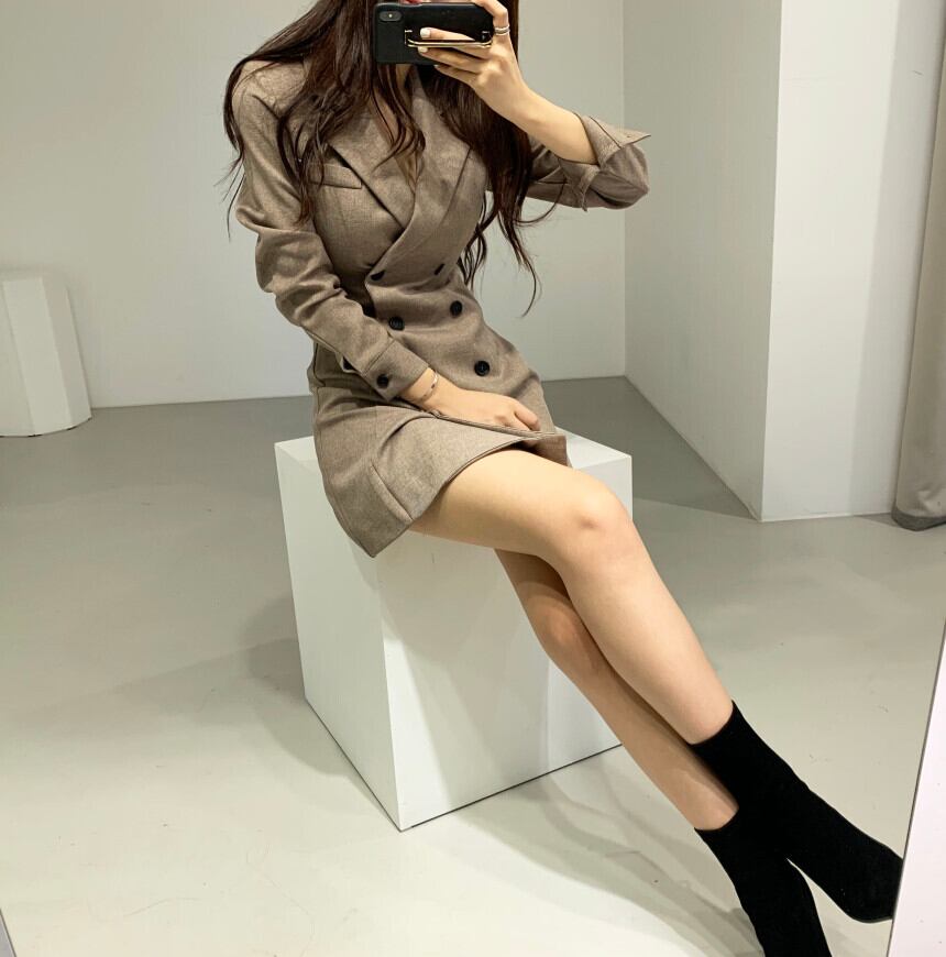 オータムダブルブレストスリムウェストAラインドレス スカート 秋物 ICC_レディース76807939672