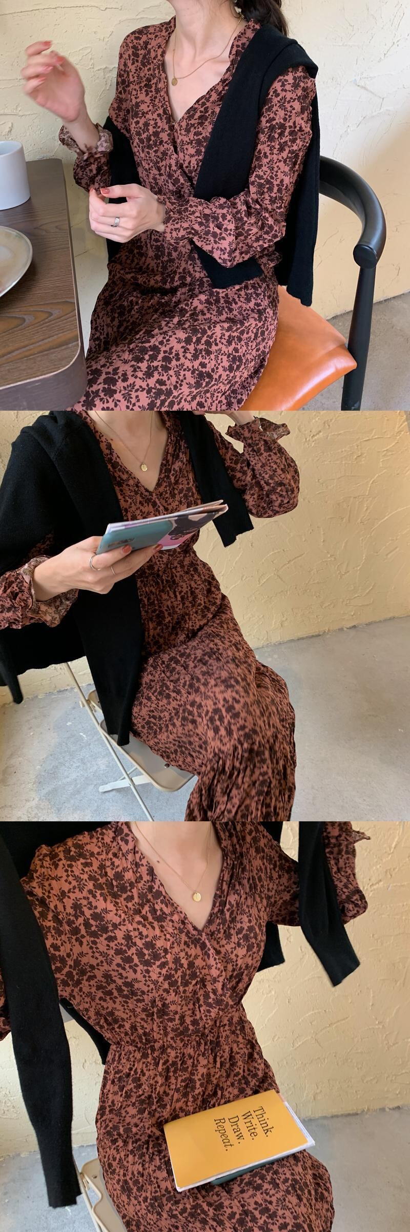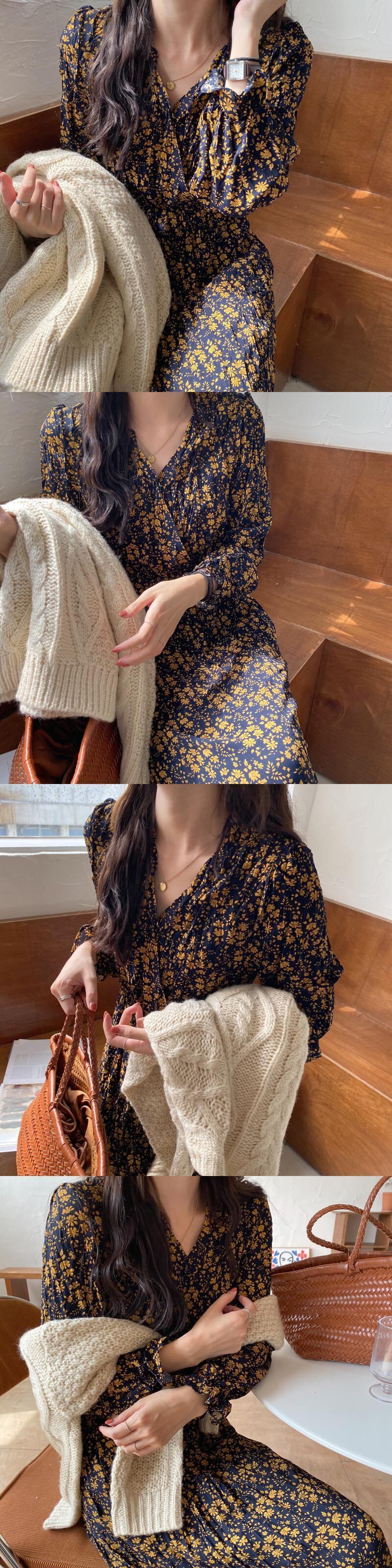 Vネックフローラルドレス ウェスト薄手スカート ロング 花柄 ICC_レディース95614581743