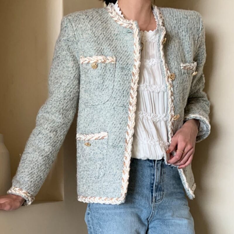 ラウンドネックジャケット Flowerデザイン メタルバックルスタイルショートカジュアル ロング Oネック フラワーデザイン ICC_レディース88273666474