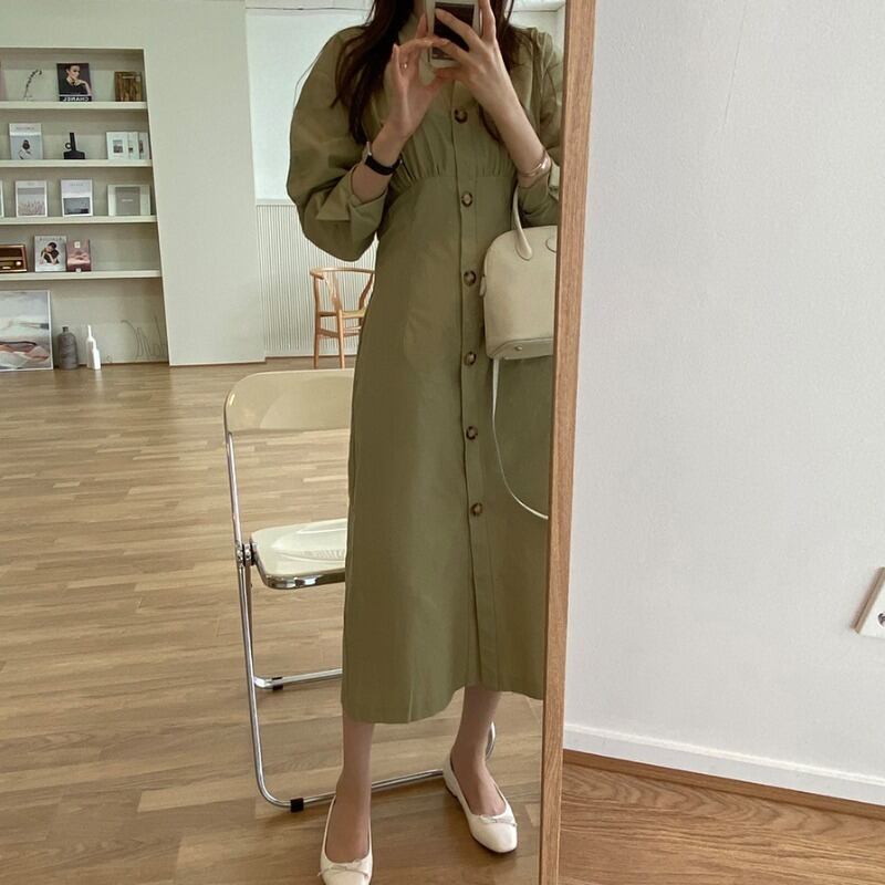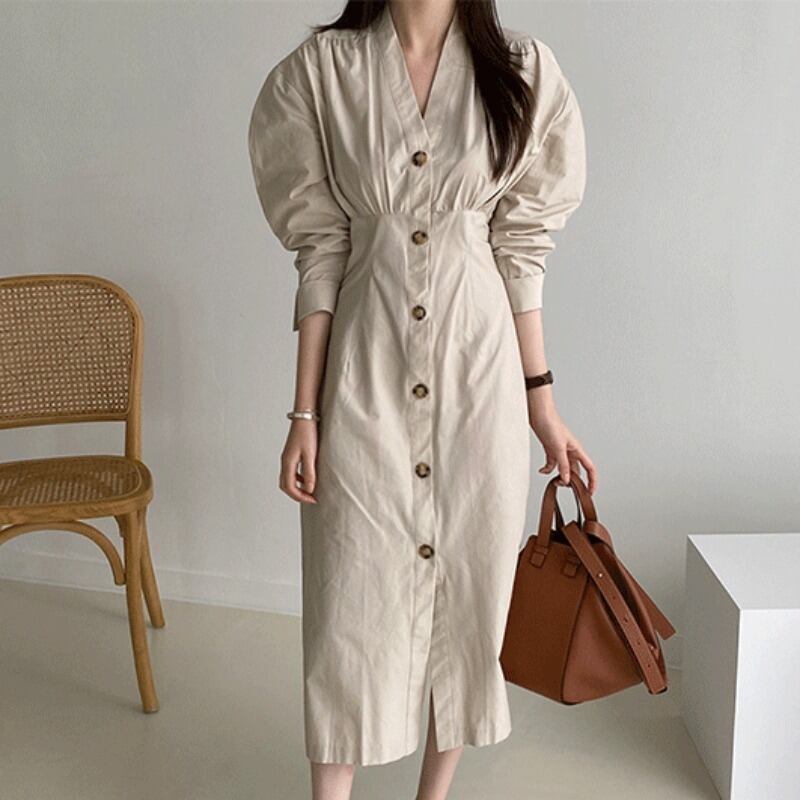 オータムVネックウェスト薄手ドレス 秋物 ICC_レディース47335208310