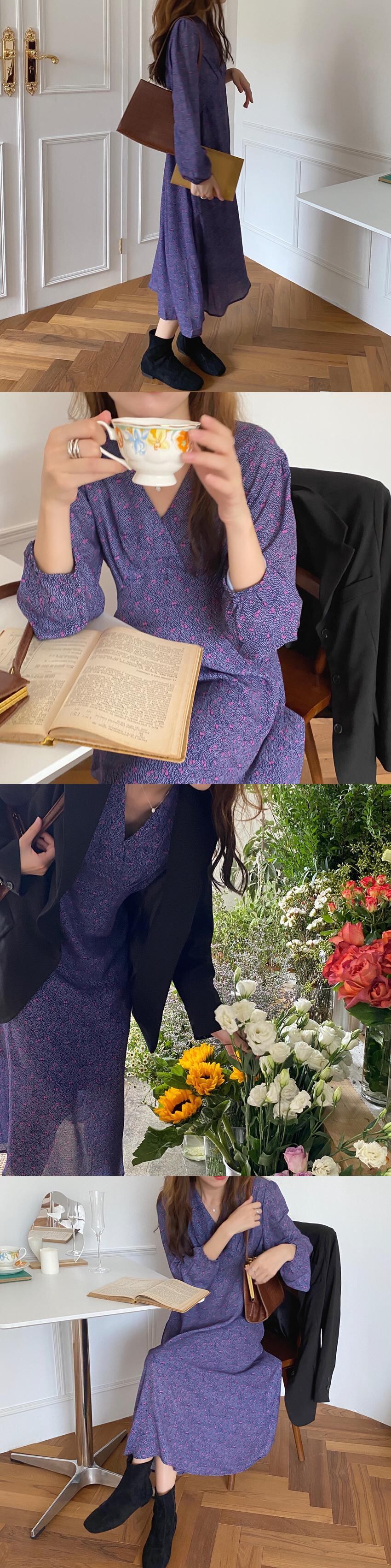 Vネックフローラルシフォンレースドレス 花柄 パープル ICC_レディース75128043887