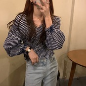 ショートクロップトップ トップス 薄手ストライプシャツ ICC_レディース10980699632