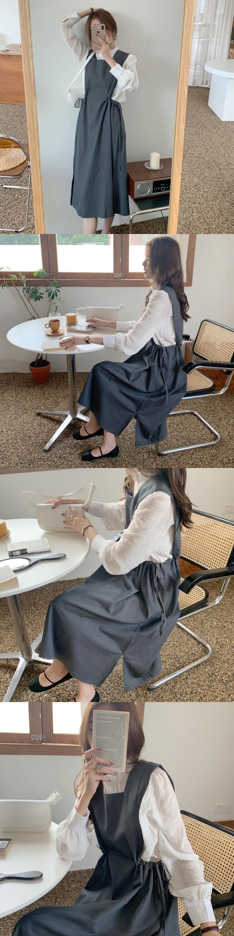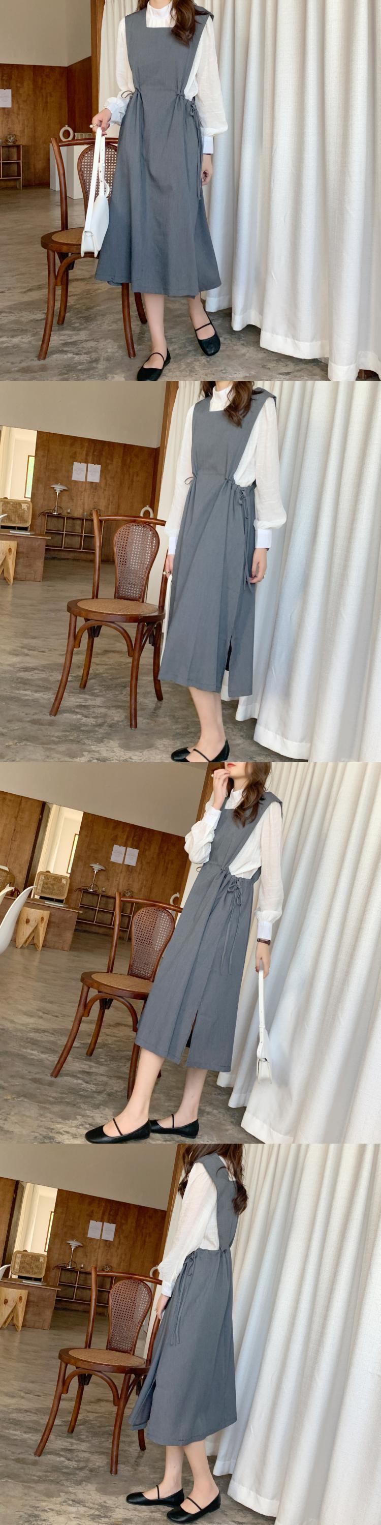 色:白のシャツ,アプリコットカラーストラップドレス,シルバーグレーのストラップドレス