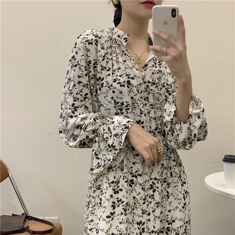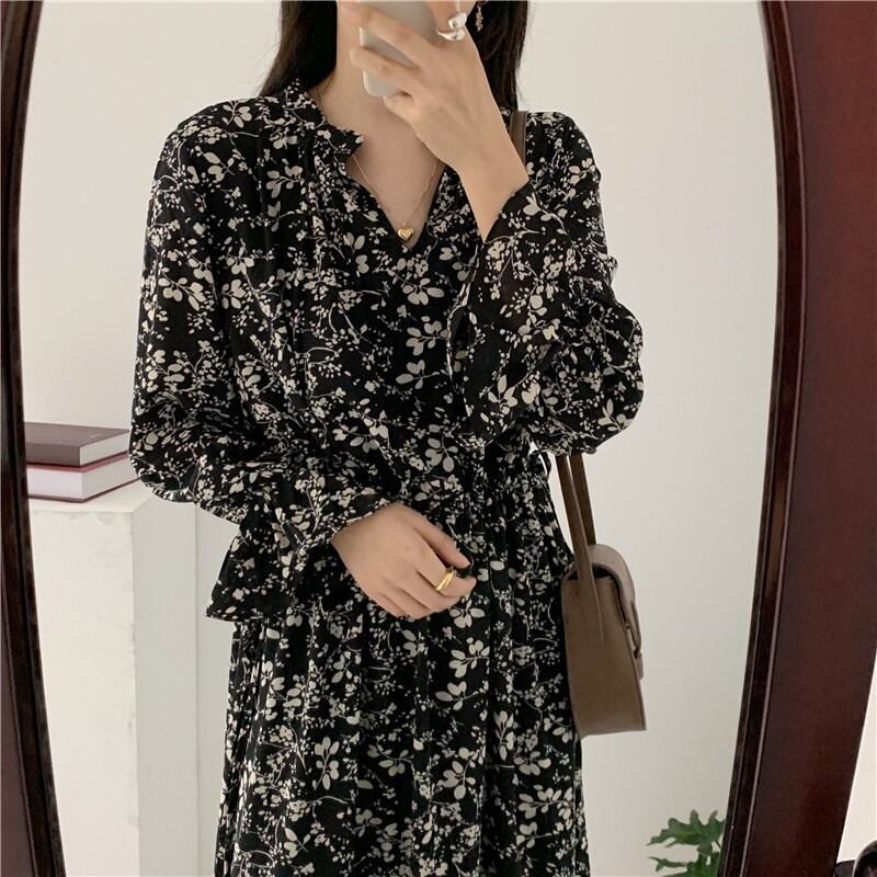 オータムスタンダードフローラルウェストベルト ドレス レトロ 秋物 ハーネス 花柄 ICC_レディース48948935053