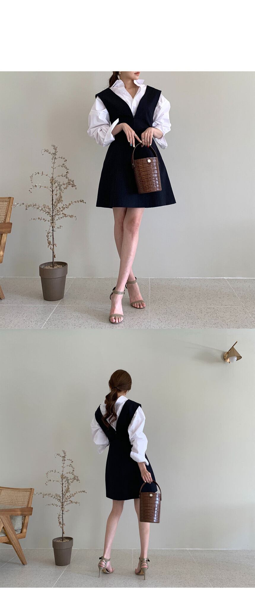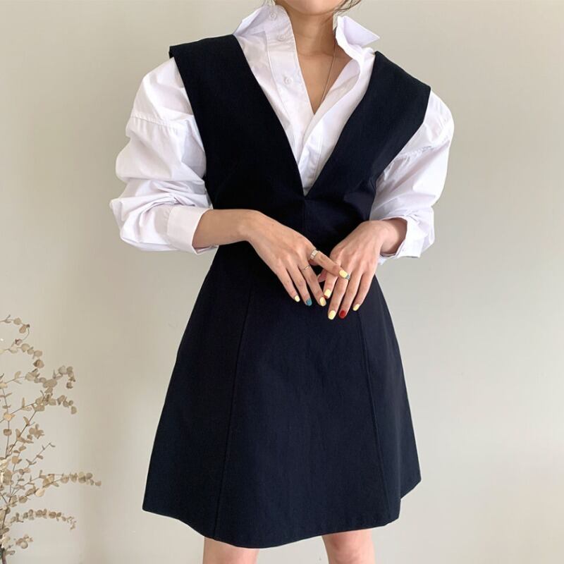 オータムスリーブシャツ ハイウェストウェストドレス 秋物 ICC_レディース82643315904