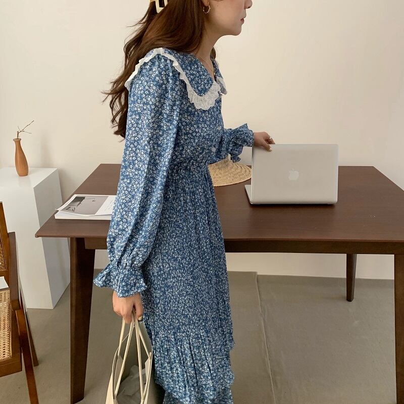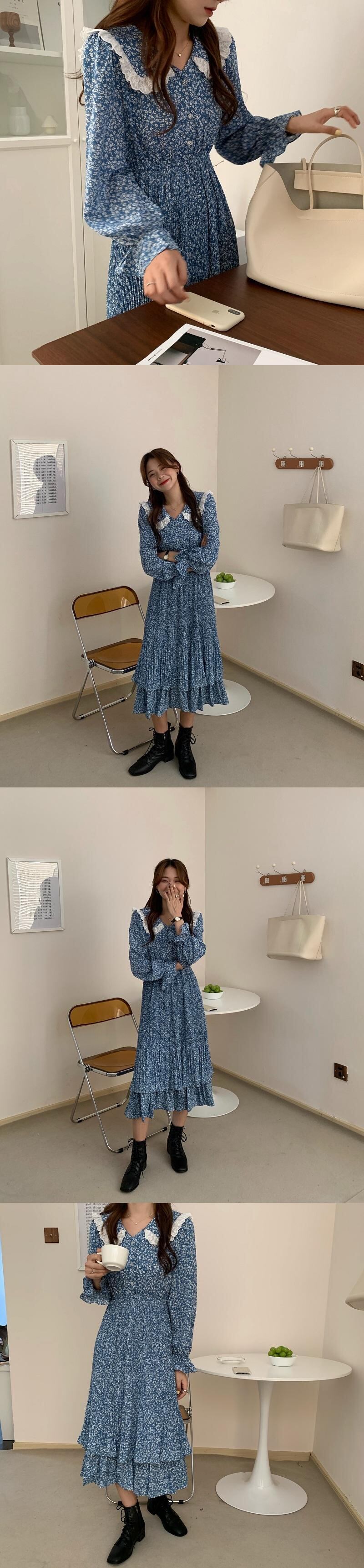 カラーレースプリーツダブルフローラルドレス ロング 大人ガーリー スウィート キュート カジュアル 花柄 ICC_レディース24641744791