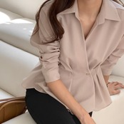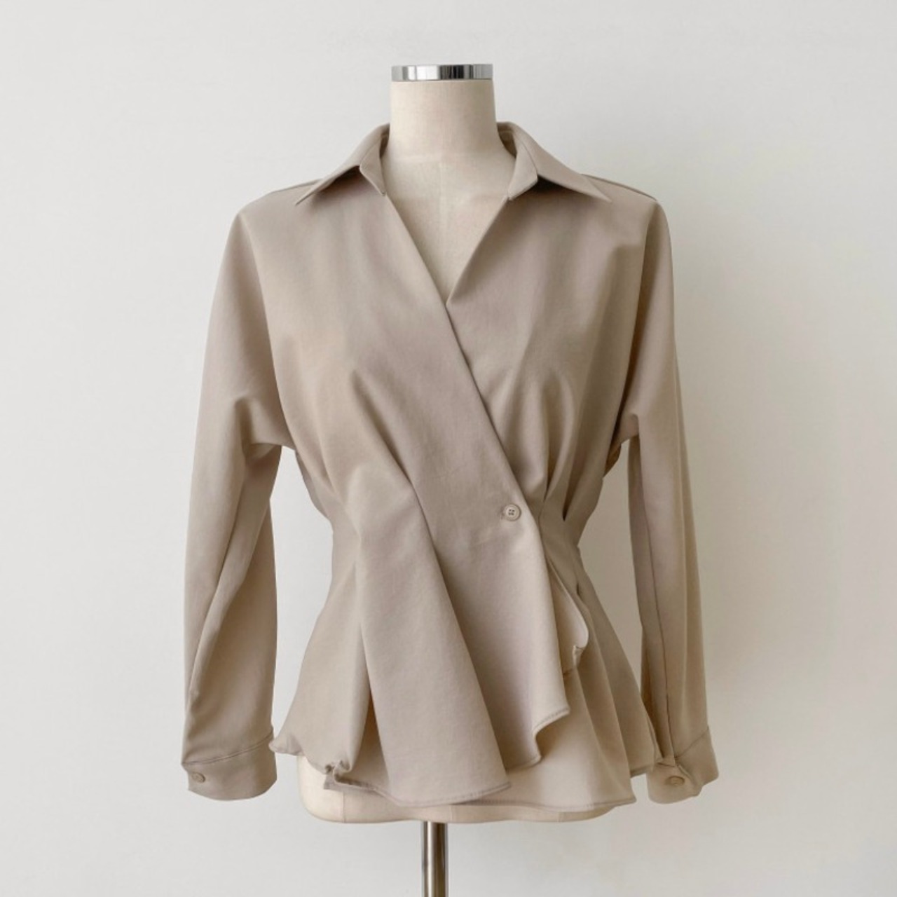 オータム薄手スタイルウェストシャツ トップス ロング 秋物 ICC_レディース54386632344
