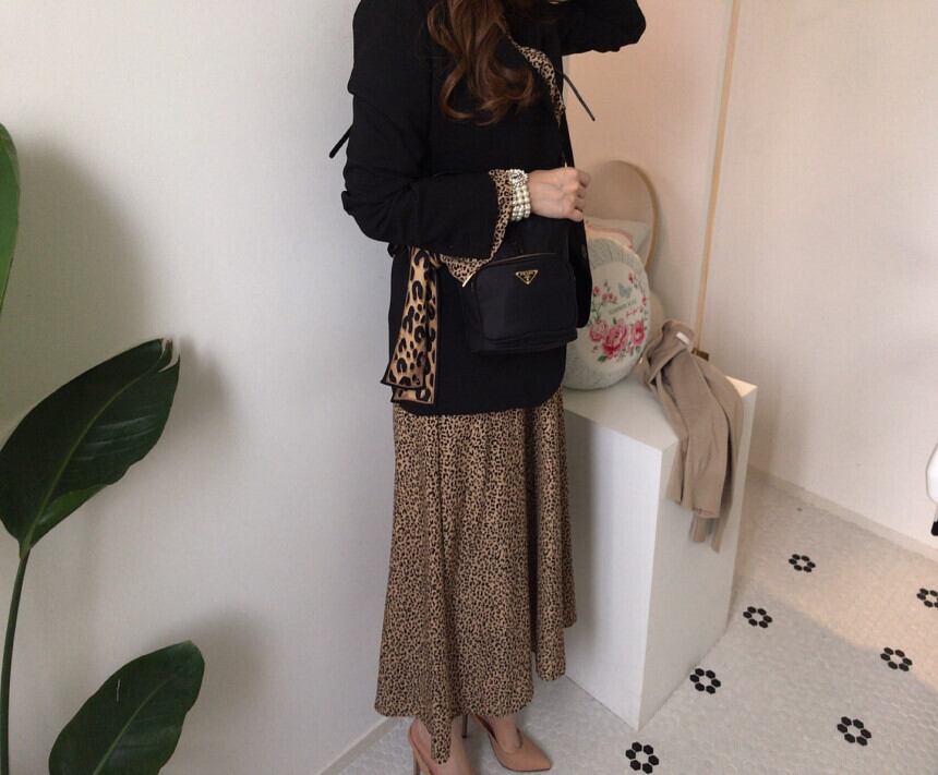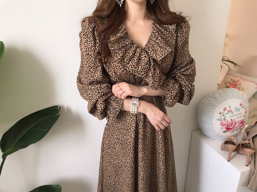 レオパードロングスカート Vネック ICC_レディース89256668523