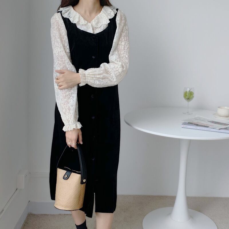 レースシャツ ベルベットドレス レディース ロング ICC_レディース6342125509