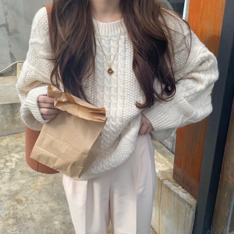 セーター スタンダードルーズラウンドネックニットトップス レディースオータムウィンター レトロ 秋物 冬物 Oネック ICC_レディース19601208656