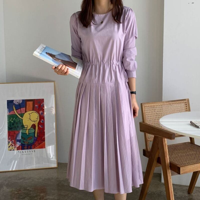 スリーブドレス ウェスト薄手プリーツスカート レース レースアップ フラワーデザイン ICC_レディース58075849766